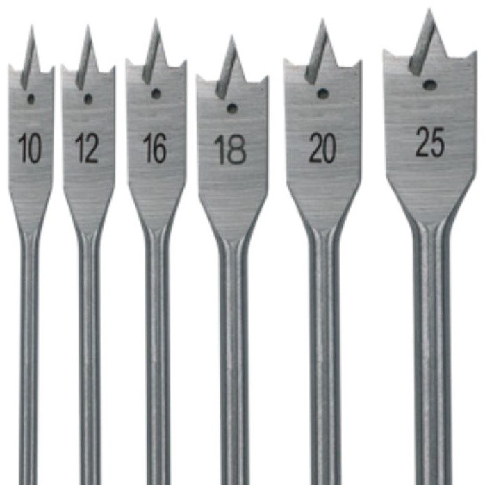 Jeu de forets à bois plats Adegso (10 mm, 12 mm, 16 mm, 18 mm, 20 mm, 25 mm)